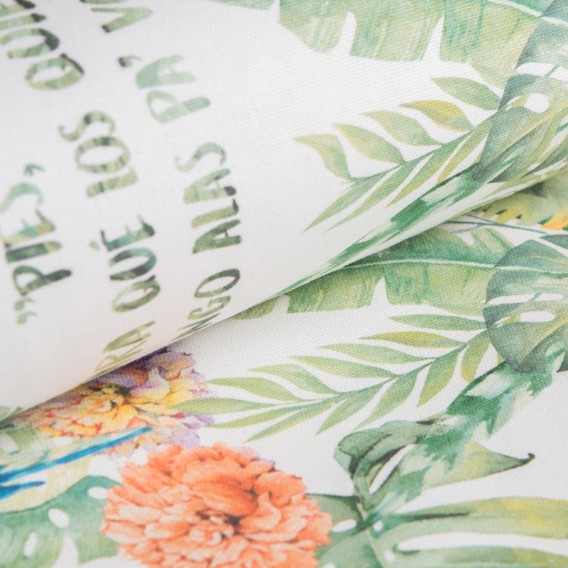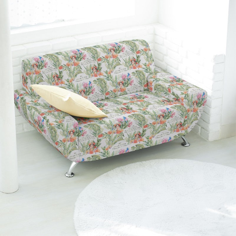 Lona com estampa da Frida Kalho. É um tecido encorpado e resistente, com textura suave, perfeio para estofar, forrar sofás, poltronas e cadeiras, fazer cortinas, colchas, capas de almofada e acessórios, como bolsas e mochilas.