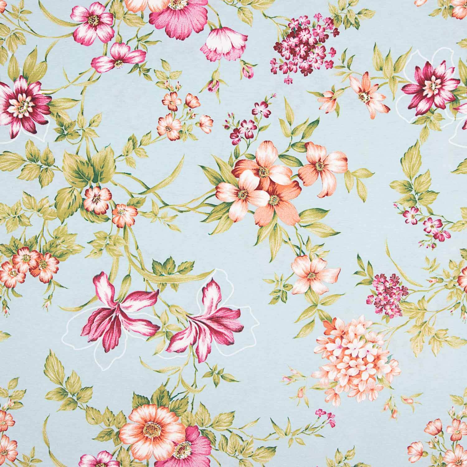 Loneta Floral Romântica Azul Claro