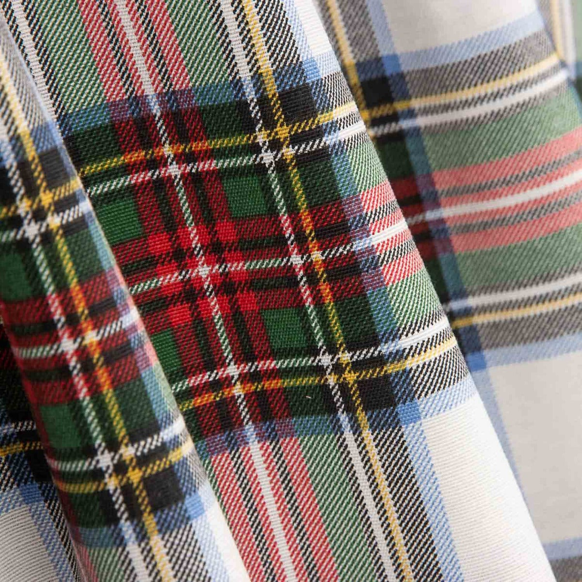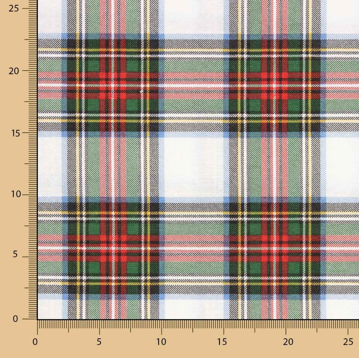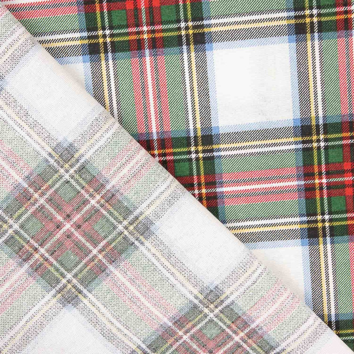 Inspirada en el clásico tartán escocés, este diseño de cuadros en tonos rojos, verdes y blancos, con sutiles líneas negras y amarillas, es perfecto para crear ambientes cálidos y acogedores durante la Navidad o durante todo el invierno.