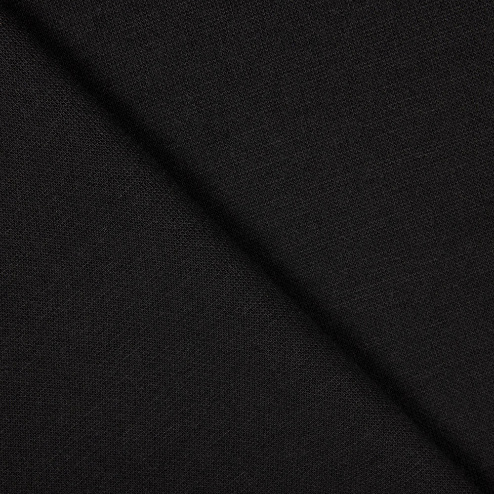 Tecido de malha com caimento de toque lanoso na cor preto mesclado. Tecido de malha inglesa ligeiramente esmerilado, na superfície do tecido pode ver-se um pelo tosquiado suave, com o mesmo aspecto dos dois lados. Trata-se de uma malha opaca muito agradável ao tato, que se estende à largura. O comprimento do tecido não é tão elástico. Adapta-se bem ao corpo. É uma malha ideal para confecionar peças de vestuário sazonais quentes, como camisolas, vestidos, saias e outros acessórios.