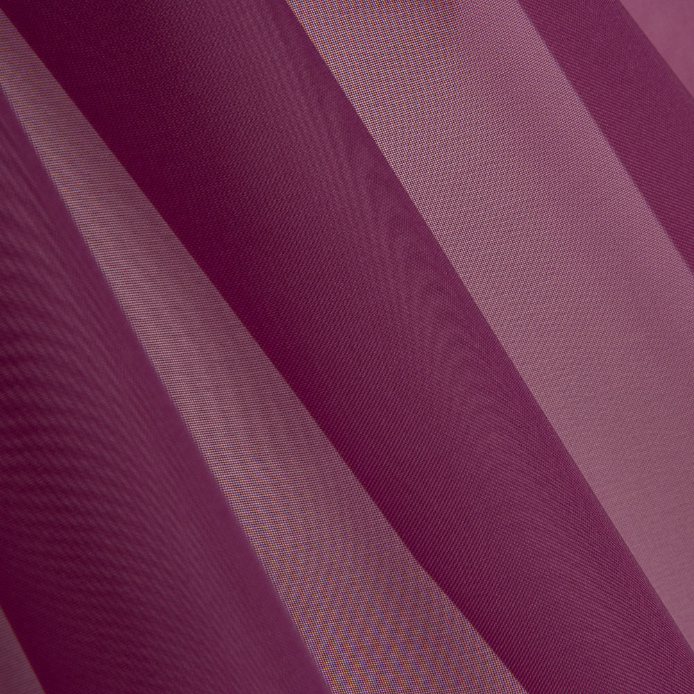 Tela organdí de poliéster en color berenjena. El organdí es un tejido tieso, semi rígido, muy ligero y translúcido que se utilizada en los trajes de flamenca para dar dar volumen y crear estructura al vestido, por ejemplo forrando volantes.