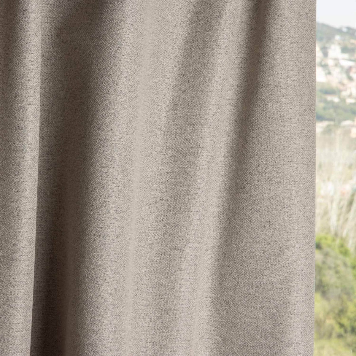 Tela black out total estilo rústico madera. Tejido oscurante para cortinas ignífugas. El black out es una tela para cortinas muy opaca, gruesa y caída, con acabado simulando falso liso. Ofrece un poder oscurante del 99% de opacidad, ideal para ensombrecer estancias evitando la entrada directa del sol.