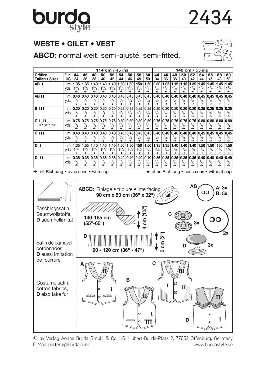 Patrón Burda 2434 Chalecos