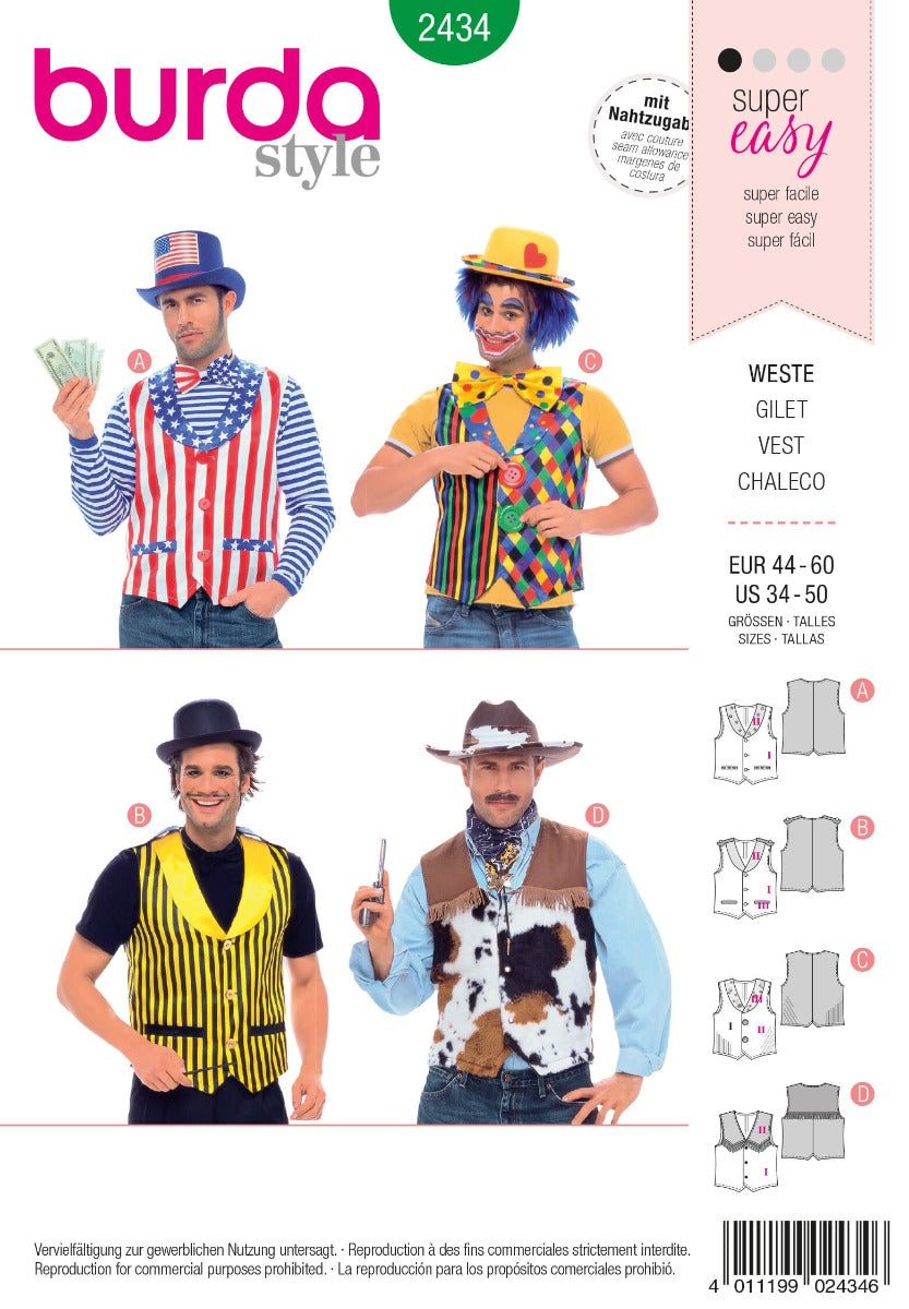 Patrones Burda para crear chalecos para disfraz de payaso, western...