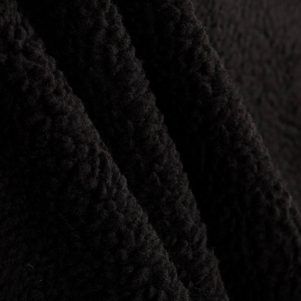 Tecido de pêlo de ovelha preto sintético. Um cabelo curto e simétrico, com corpo, peso e opaco. É um tecido amplamente utilizado para vestuário e artesanato, embora seja também utilizado para estofos.