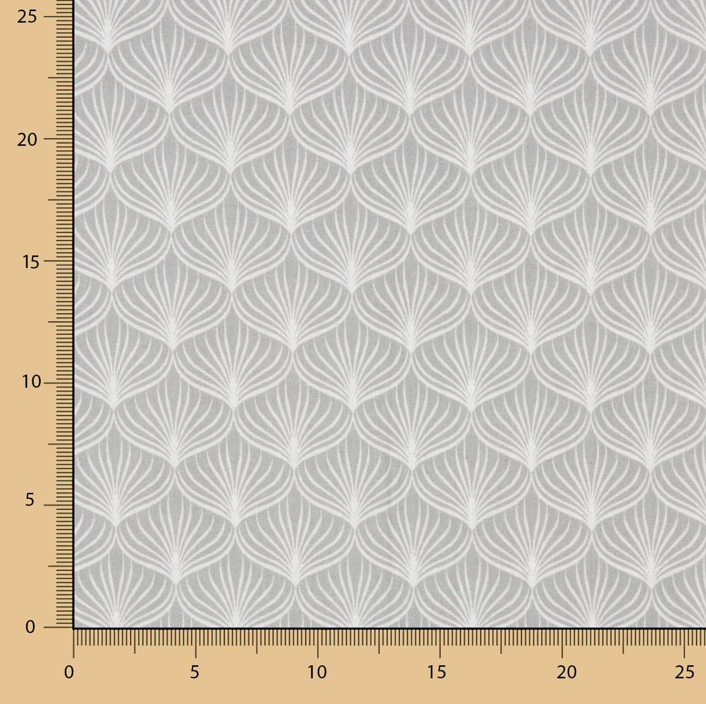 Este tecido de percal 100% algodão com estampado de folhas em cinza claro sobre fundo branco combina elegância e suavidade num design moderno e intemporal. Com uma largura de 140 cm, é ideal para roupa de cama, almofadas, cortinas, roupa infantil ou acessórios decorativos.