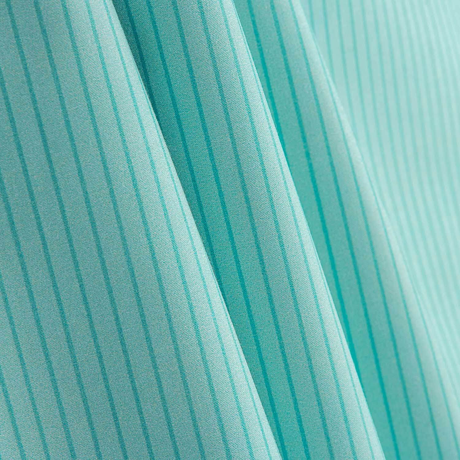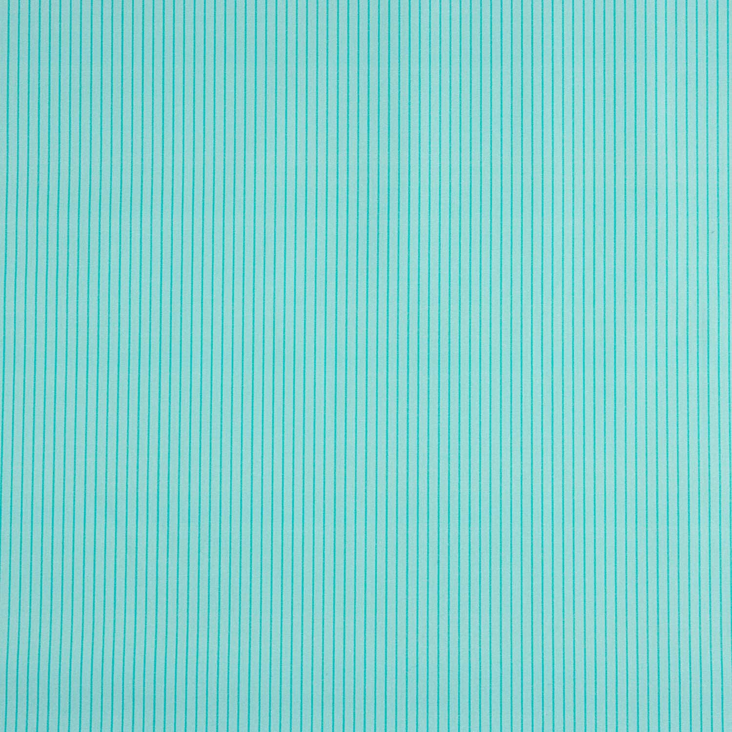 Composição: 100% algodão | Qualidade: Percal 200 fios | Largura: 140 cm | Estampagem: Digital de alta definição | Design: Listras finas verde-água sobre fundo claro | Usos: Lençóis, capas de edredão, camisas, vestidos, blusas, almofadas e decoração