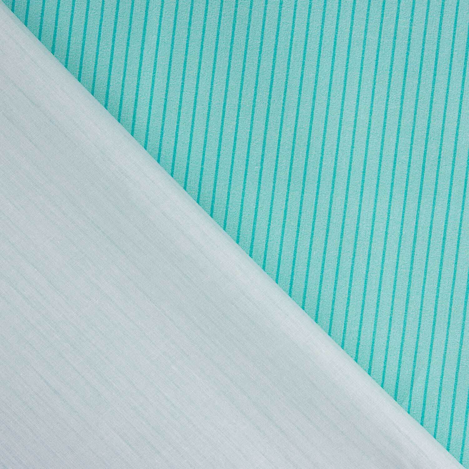 Percal estampado com riscas verde água confecionado em 100% algodão e tecido em percal de 200 fios, que oferece suavidade, frescura e excelente resistência. Apresenta um elegante design de riscas finas em tom verde água sobre fundo claro, criando um estampado fresco, equilibrado e intemporal.