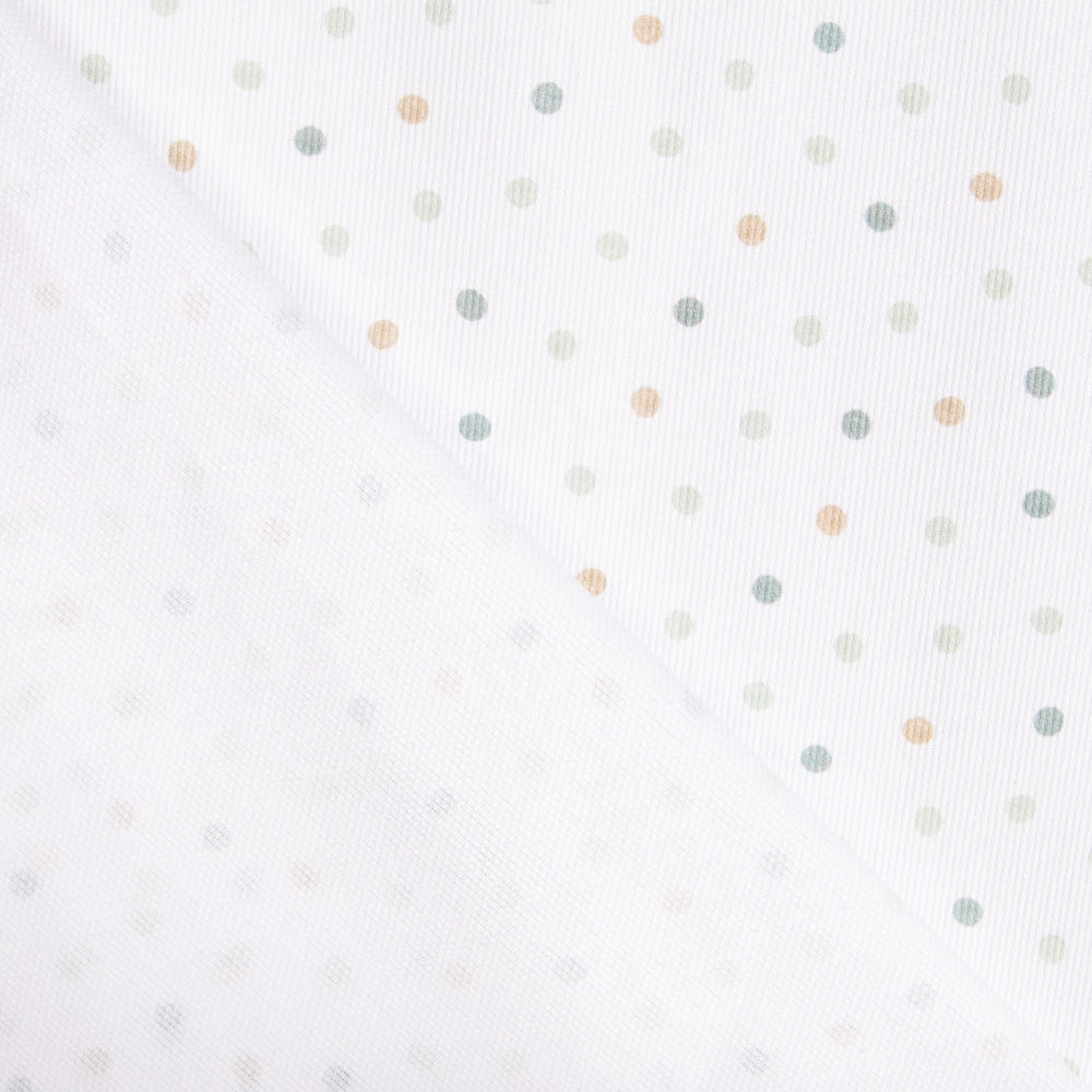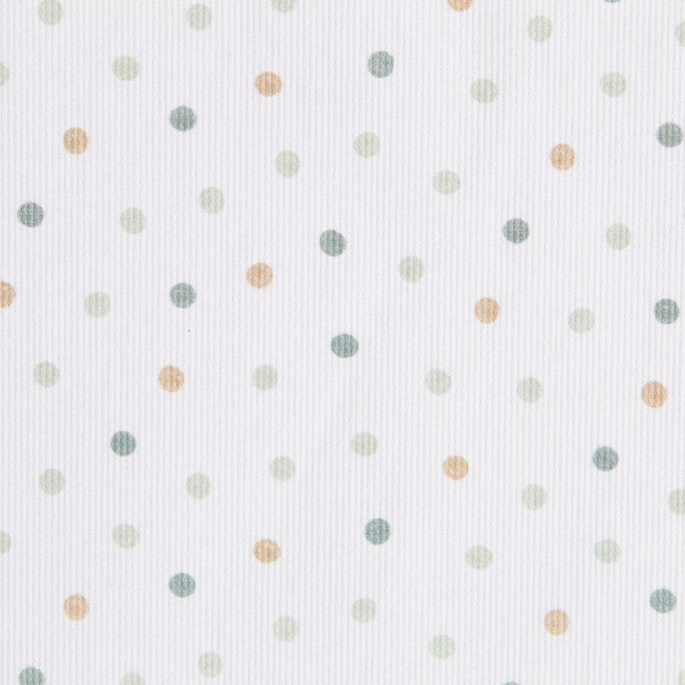 Tela para bebés de lunares blancos sobre fondo verde menta. El piqué es una tela infantil de algodón caracterizada por ser un tejido muy suave y no abrasivo, con una pequeña trama de rayas en relieve, el clásico canutillo. Tela estampada infantil para vestidos y faldas, confección de camisas y pantalones. También podrás confeccionar ropa de cama, como sábanas, cucos, arrullos y moisés. Combina los piqués estampados 100% algodón y crea tus mejores ropas para niñas y niños.