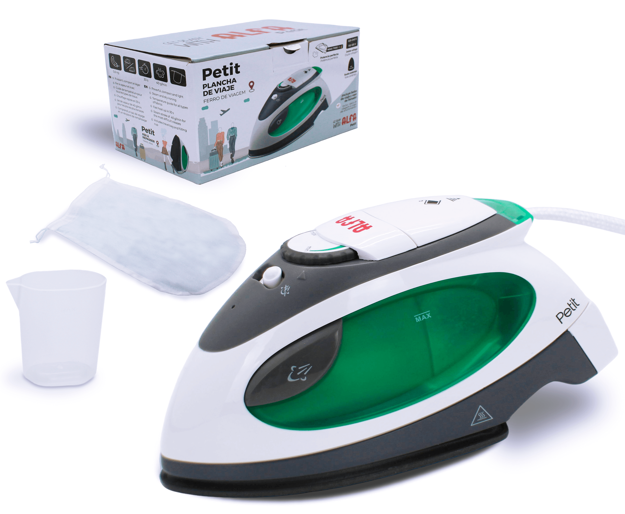 O ferro de viagem ALFA Petit é potente, leve e perfeito tanto para viajar como para trabalhos de patchwork e costura criativa.