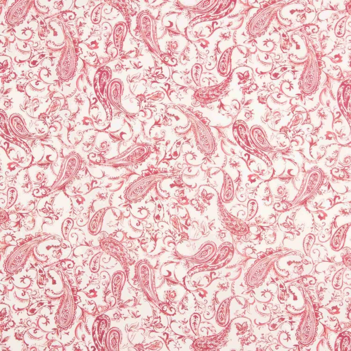 Este popelín fino 100% algodón con estampado de cachemir en tonos rojos es una opción ideal para confecciones frescas, elegantes y llenas de estilo, perfecto para camisas, vestidos, blusas, ropa infantil, manualidades y decoración ligera.