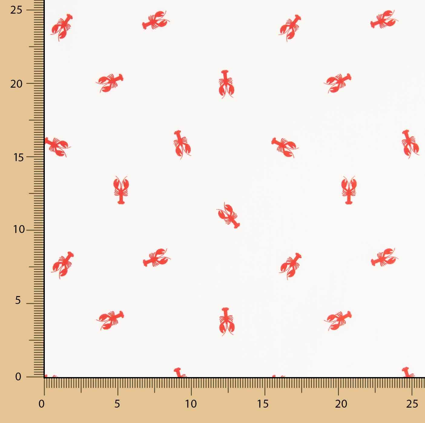 O seu estampado de pequenas lagostas vermelhas distribuídas sobre um fundo claro confere um design divertido, elegante e muito atual, especialmente indicado para moda infantil, juvenil e decoração temática.