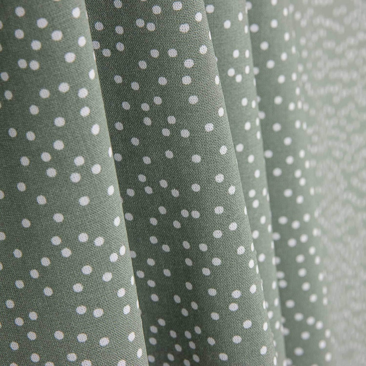 Tecido de popeline 100% algodão de alta qualidade, com um estampado de pequenos bolinhas brancas sobre fundo verde salva, ideal para quem procura um desenho delicado e atual. Este tecido é perfeito para patchwork, confecção de roupas infantis e adultas, acessórios e todos os tipos de projetos DIY que exijam um estampado sutil e elegante. Com um toque suave, tecido opaco e ligeiramente rígido, oferece conforto e versatilidade tanto para costura à mão como à máquina. Graças à sua composição natural, é respirável e resistente, garantindo acabamentos duradouros e confortáveis. Recomenda-se lavar antes de cortar ou manusear, para evitar possíveis encolhimentos, como é habitual em tecidos de algodão.