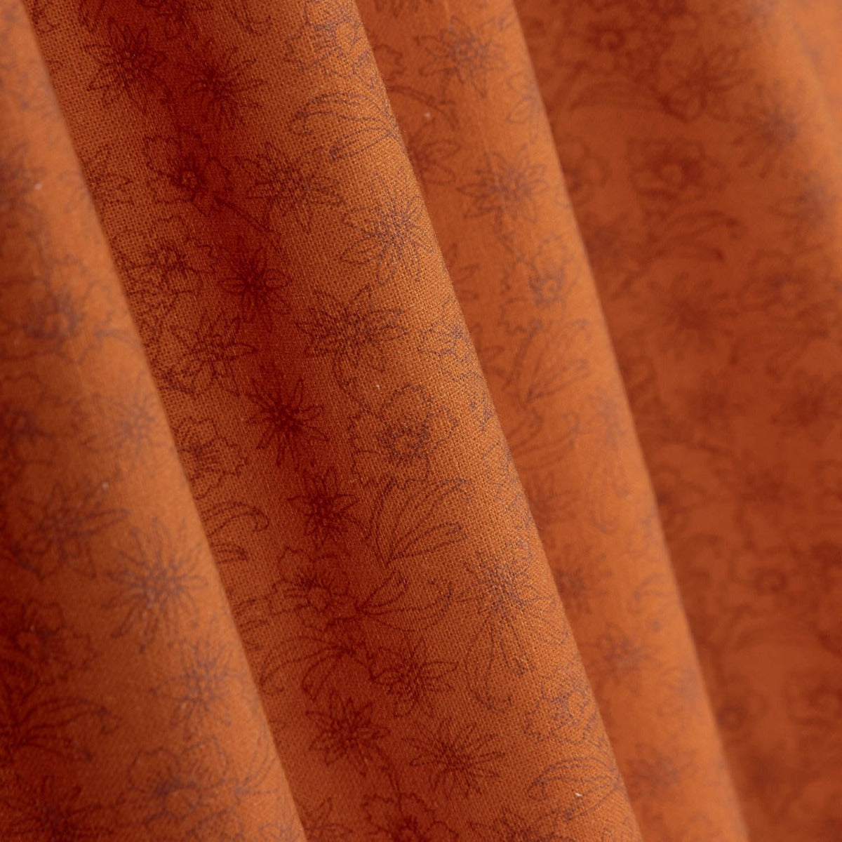 Este popeline de algodão 100% em um tom quente alaranjado apresenta um sutil estampado floral em um tom ligeiramente mais escuro, o que lhe confere uma textura elegante e discreta. Com uma largura de 115 cm, é ideal para projetos de patchwork, quilting e costura decorativa que busquem um estilo sofisticado e quente. A suavidade e resistência do algodão puro o tornam perfeito para confeccionar colchas, almofadas e outros elementos têxteis, garantindo um acabamento de alta qualidade.