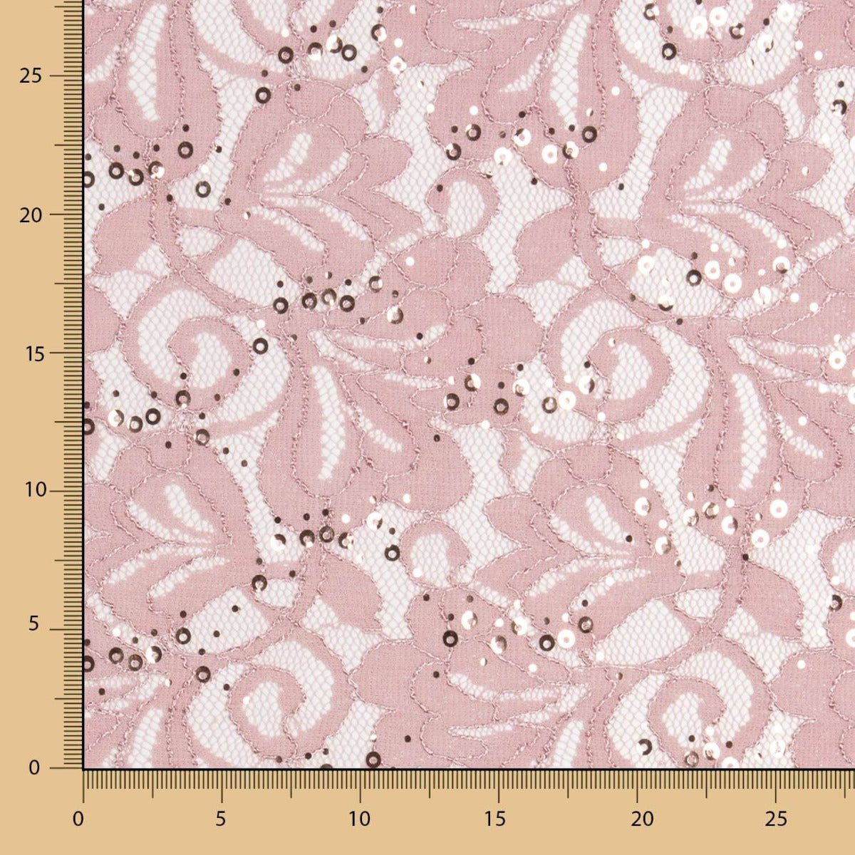 Tecido de renda com lantejoulas Maquiagem. Tecido rendado com desenho floral com base em malha fina na cor rosa pó. Desenho de flores encimado por um ligeiro rebrodé no mesmo tom de fio pérola que lhe confere um acabamento acetinado suave muito elegante. O tecido é pontilhado por pequenas lantejoulas costuradas no mesmo tom com um brilho bem sutil. A largura do tecido é de 1,30m com acabamento ondulado nas duas ourelas que você pode usar para finalizar a peça no decote, bainha e mangas. Ideal para confecção de moda para festas e cerimônias. Recomendamos os nossos crepes lisos para dar corpo ao tecido respeitando o caimento e cobrindo as zonas mais abertas. Você pode ver todas as cores disponíveis neste link.