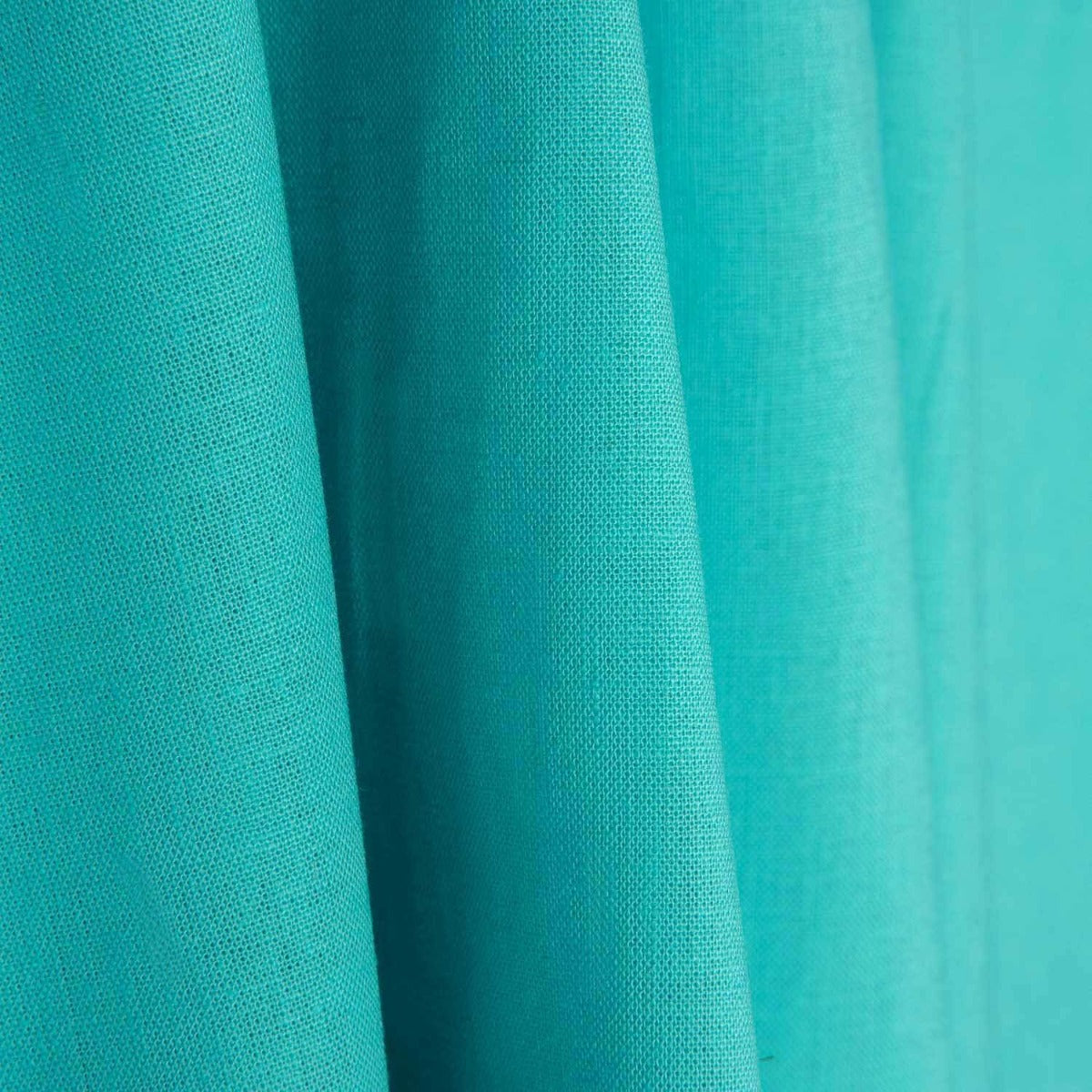 Tela lisa compuesta por 55% lino y 45% viscosa en color azul turquesa, con un ancho de 145 cm, ideal para confección de prendas ligeras y proyectos de decoración con estilo natural.