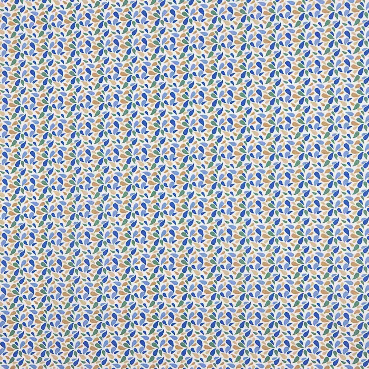 Esta elegante tela de percal de algodón 100% presenta un estampado floral de gotas en tonos azules, verdes y beige, perfecto para dar un toque natural y fresco a tus proyectos de costura.