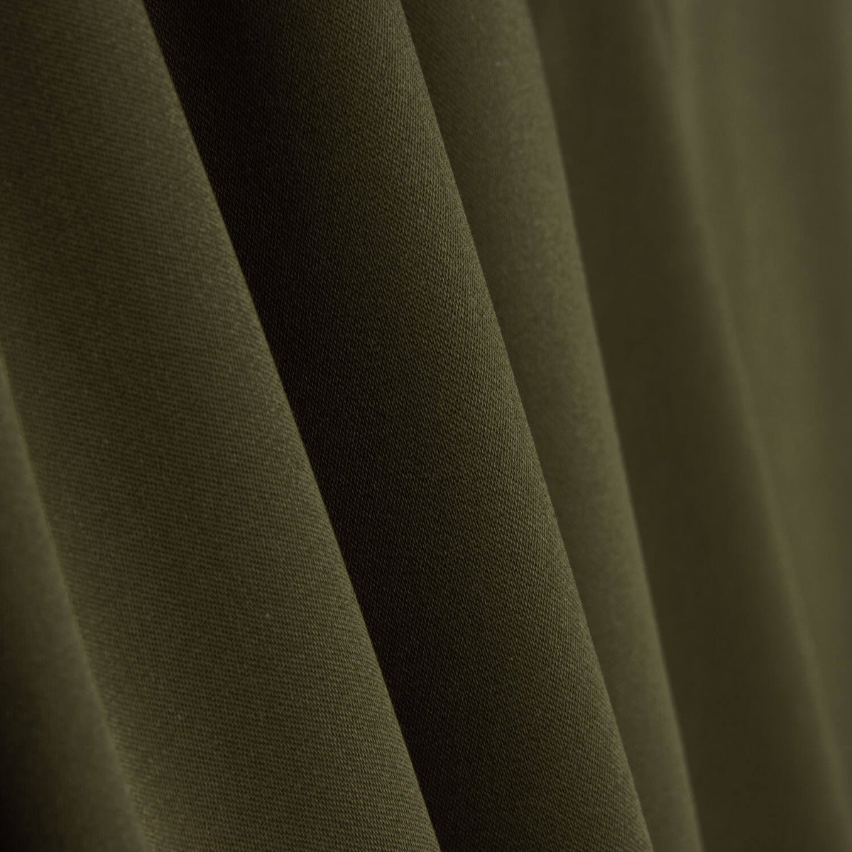Tela de sarga elástica en color verde kaki, disponible en oferta por últimos metros, ideal para confeccionar prendas de moda con estructura como pantalones, faldas o chaquetas.