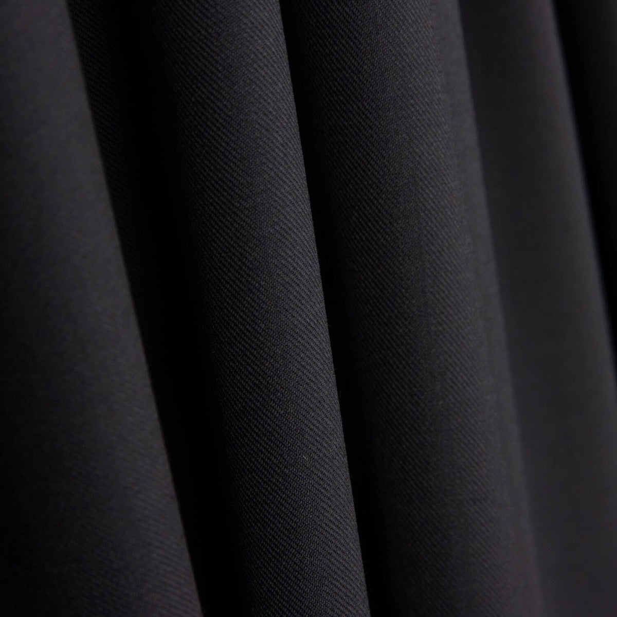 Tela de sarga en color azul marino, con un tejido suave, sostenido y de tacto frío, perfecta para confeccionar prendas de sastrería como trajes, pantalones, faldas o chaquetas.