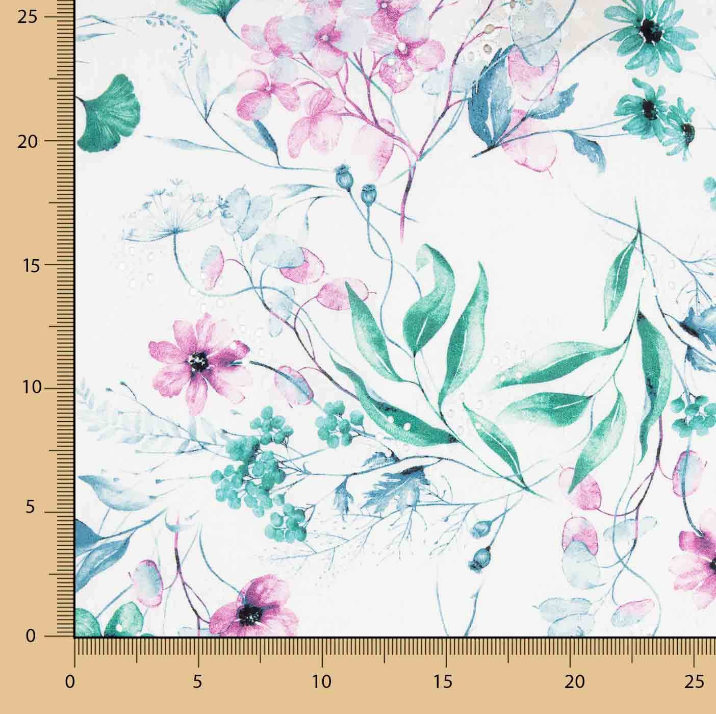 Este tecido liso 100% algodão com bordado e estampado floral digital combina delicadeza, frescura e um design elegante de inspiração natural. A sua base de algodão oferece um toque suave, respirável e confortável, enquanto o bordado confere relevo e textura, enriquecendo o estampado digital de flores em tons suaves e harmoniosos. Com uma largura de 145 cm, é um tecido ideal para a confecção de blusas, vestidos, camisas, roupa infantil e peças de entre-estações, bem como para projetos decorativos leves como almofadas, cortinas finas ou detalhes têxteis. Uma opção perfeita para quem procura um tecido natural, feminino e de alta qualidade, que une a precisão da estampagem digital com o valor artesanal do bordado.