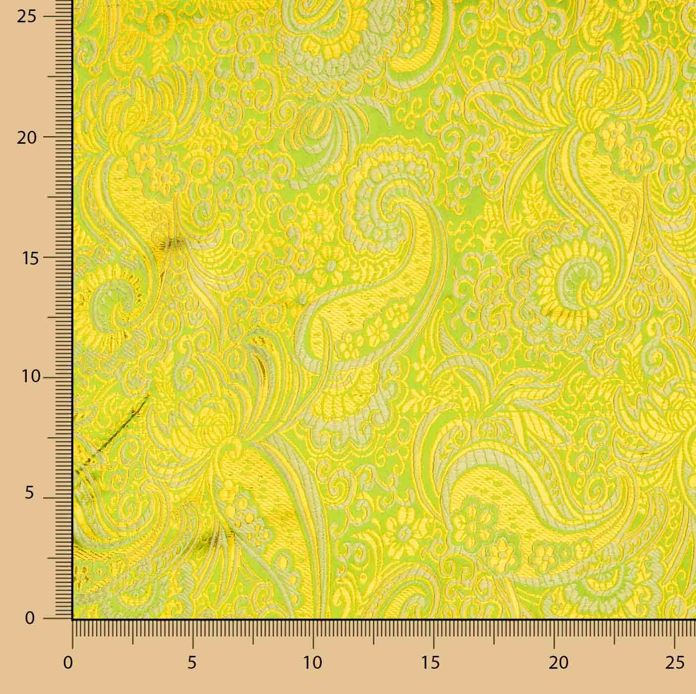 O contraste entre o tom verde vibrante e os reflexos dourados cria um efeito visual muito chamativo e decorativo. O design estilo brocado é tecido diretamente no tear, garantindo um acabamento rico, duradouro e com textura.