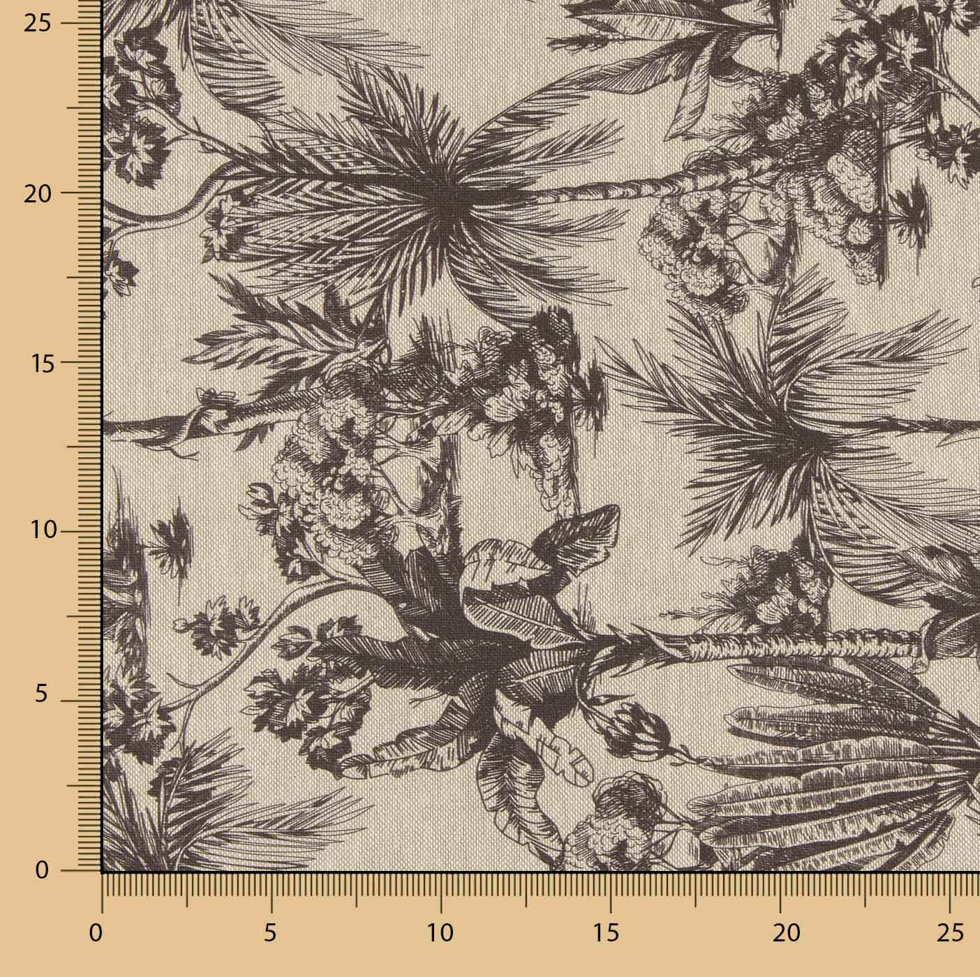 O tecido de lona 100% algodão é um tecido resistente, natural e de grande largura, ideal para projetos de decoração e confeção para o lar. Este modelo apresenta um elegante estampado botânico em preto sobre fundo claro, com ilustrações de folhas, ramos e elementos vegetais de estilo artístico que conferem um ar sofisticado e decorativo. Graças à sua largura extra de 280 cm, este tecido permite confecionar peças de grandes dimensões com menos costuras, o que o torna especialmente prático para projetos de decoração. A sua composição de 100% algodão proporciona um toque natural, boa resistência e grande durabilidade. Trata-se de uma lona com corpo e estrutura firme, perfeita para múltiplas aplicações têxteis. O seu design botânico de inspiração tropical combina facilmente com estilos decorativos naturais, contemporâneos ou mediterrânicos. Características do tecido