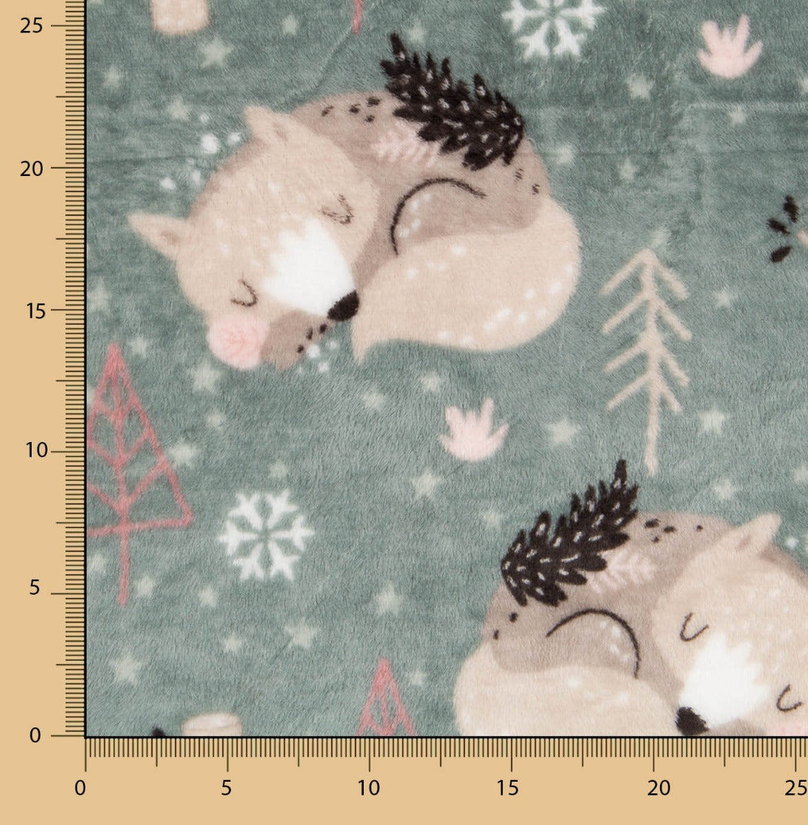 Tecido Polar Coralina Raposas Verde - Ribes y Casals