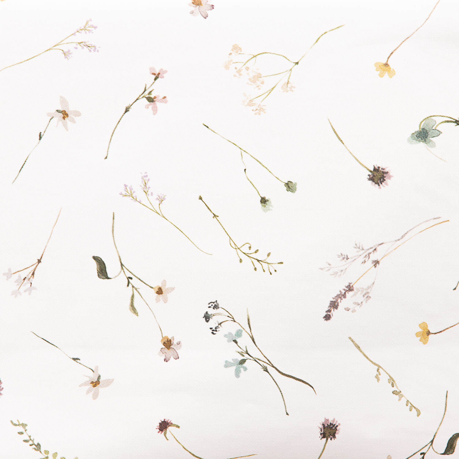 Este tecido sarja resinada 100% algodão é ideal para a confecção de toalhas de mesa à medida, combinando um tecido natural de grande qualidade com um acabamento prático e resistente. O seu delicado estampado floral de pequenas flores silvestres confere um estilo elegante, leve e natural, perfeito para cozinhas, salas de jantar ou terraços.