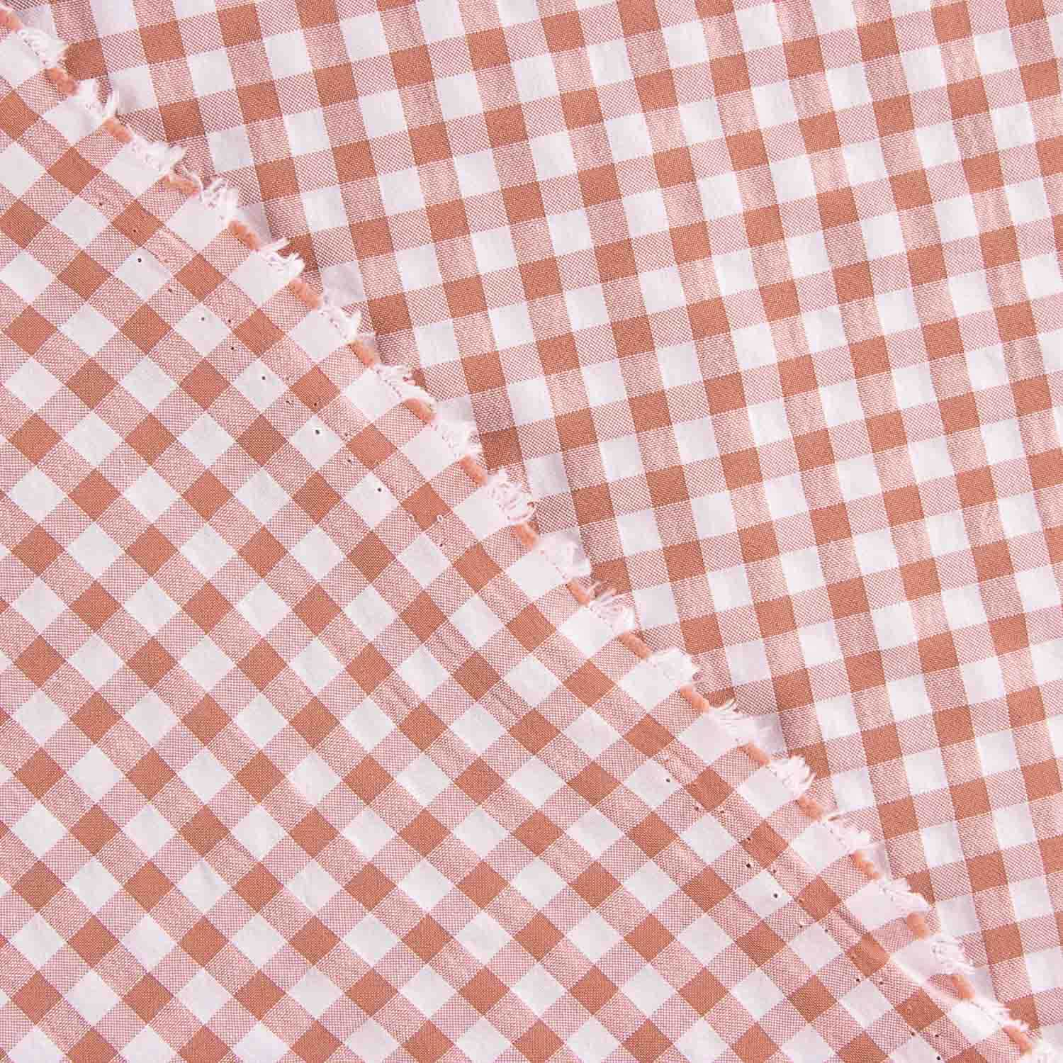 Este tecido seersucker xadrez vermelho e branco combina leveza, frescura e um design clássico ideal para confecções de verão. A sua característica textura ligeiramente enrugada, própria do tecido seersucker ou bambula, confere volume, conforto e uma aparência natural muito agradável.