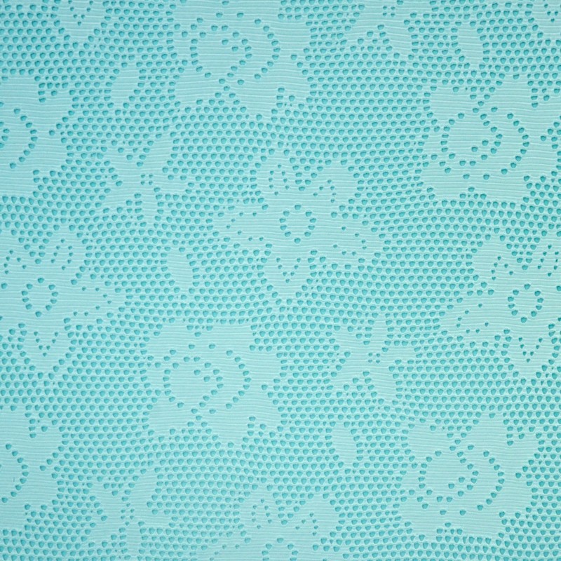 Tecido elástico de grade de malha de cor verde-água. Tecido elástico com grades de malha encorpado e fluido, muito suave e com alguma elasticidade graças à percentagem de Elastómero que o tecido contém. Tecido de malha ideal para vestidos, saias, camisas e muito mais.