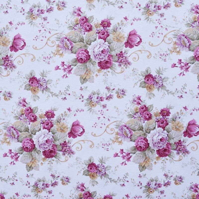 Tecido cretone de algodão estampado com flores sobre um fundo cru. Tecido para estofar opaco, encorpado e muito resistente, de elevada durabilidade e decorativo. Ideal para estofar sofás e confeccionar almofadas, fronhas, malas e bolsas.