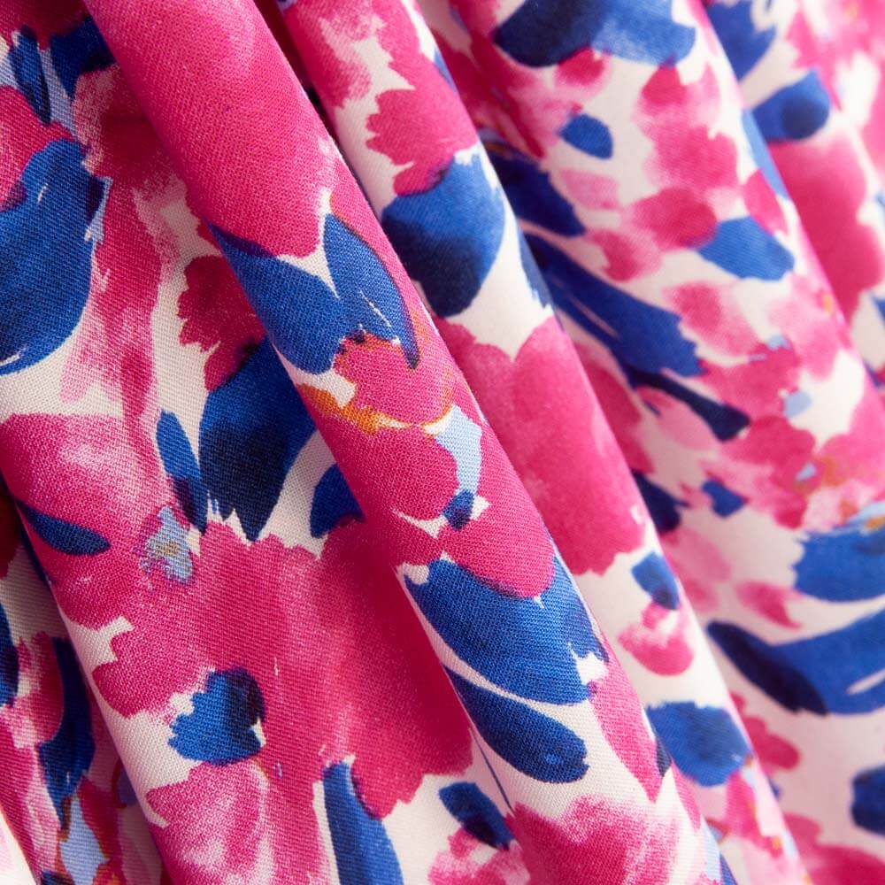 Tela de viscosa estampado floes rosa, tela con caída, muy fluida y sedosa.La viscosa es una tela fina que se caracteriza por el vuelo y la caída, con una textura suave y fresca. Tela de viscosa lisa con la que puedes hacerte vestidos, faldas, pantalones palazzo, jumpsuits y todo tipo de prendas de moda.Una tela que sin duda será tendencia para esta temporada. Al ser un tejido 100% viscosa, recomendamos un lavado previo a ser manipulado.
