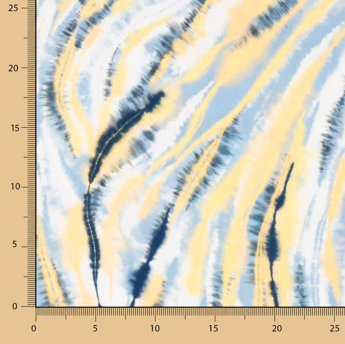 Tela de viscosa estampado tye-dye azul, tela con caída, muy fluida y sedosa.La viscosa es una tela fina que se caracteriza por el vuelo y la caída, con una textura suave y fresca. Tela de viscosa lisa con la que puedes hacerte vestidos, faldas, pantalones palazzo, jumpsuits y todo tipo de prendas de moda.Una tela que sin duda será tendencia para esta temporada. Al ser un tejido 100% viscosa, recomendamos un lavado previo a ser manipulado.