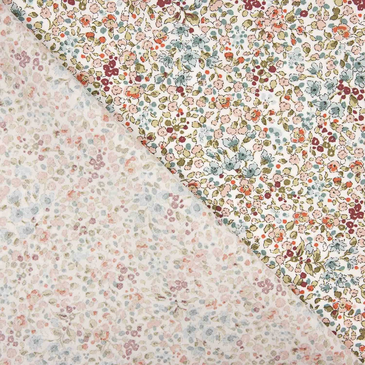 Tecido Viyela de algodão com toque suave e estampado de pequenas flores que combina tons de rosa e verde. Ideal para confeccionar camisas, vestidos e roupas infantis, sua leveza garante conforto e transpiração. O delicado estampado floral adiciona um toque romântico e atemporal, perfeito para designs elegantes e versáteis. Com este tecido de alta qualidade, suas criações se destacarão por seu encanto natural e sofisticado.