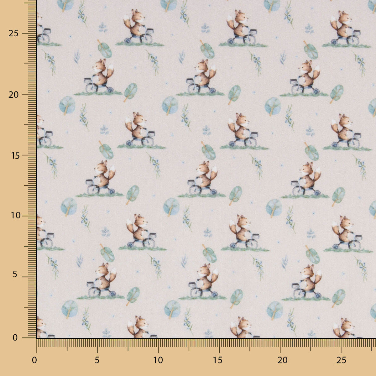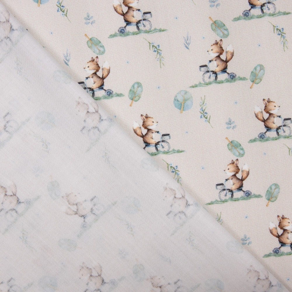 Viyela de algodão roupa infantil com desenho esquilos bici. Tecido muito macio e agradável ao toque com uma textura de pelúcia, ideal para vestuário de meia estação, acessórios e vestuário infantil.