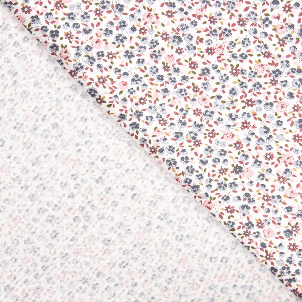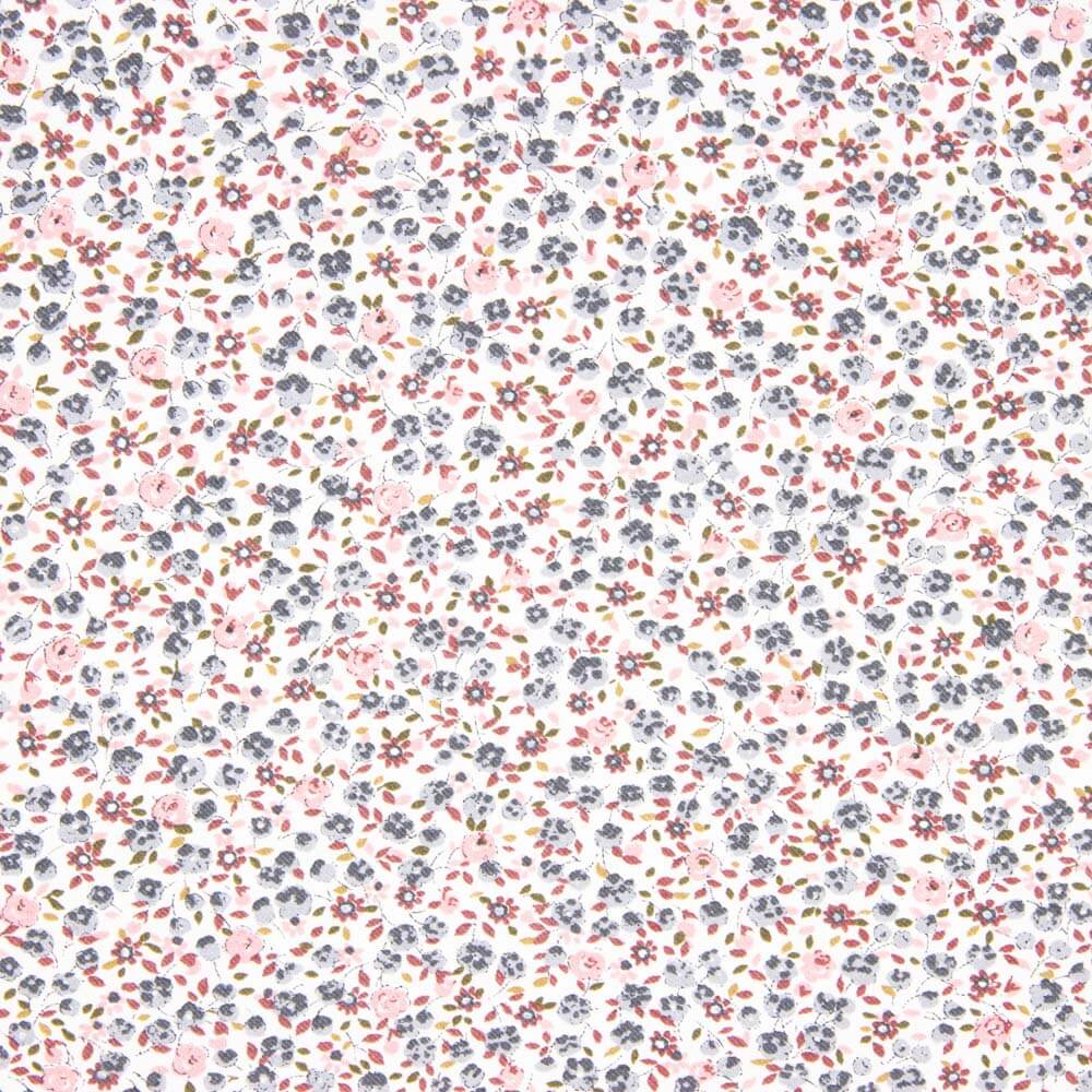 Viyela de algodão infantil com estampado flores de Outono. Tecido muito macio e agradável ao toque com uma textura de pelúcia, ideal para vestuário de meia estação, acessórios e vestuário infantil.