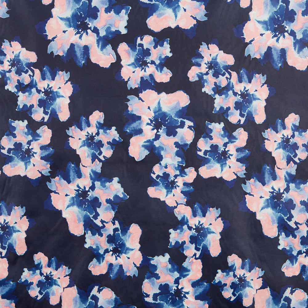 Tecido repelente à água com estampagem de flores. O tecido water repellent é um tecido de poliéster fino e muito macio, que é muito forte e totalmente opaco. Ideal para parkas, casacos e corta-ventos.